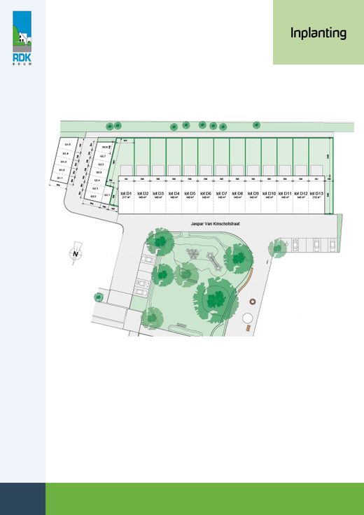 Dit nieuwbouwproject met dertien woningen wordt gerealiseerd aan de Jaspar van Kinschotstraat te Turnhout. Hiervoor werd de bestaande weg verlengd waardoor er een nieuwe, eigentijdse verkaveling werd gerealiseerd. Er is hierbij niet enkel plaats voor bebouwing, maar ook voor openbaar groen. Dankzij een charmant groen pleintje vormt deze verkaveling een rustig geheel waar het aangenaam wonen is. Een van de grote troeven van dit project is zijn mooie ligging. U woont hier immers in het hart van Turnhout waardoor alle nodige winkels en gezellige horecazaken zich op fietsafstand bevinden. Bij het ontwerp van de woningen werd bewust gekozen voor een moderne architectuur waardoor dit project een eigentijdse uitstraling krijgt. Ook binnen werd er veel aandacht geschonken aan woonkwaliteit. Zo hebben alle woningen een ruime, lichte woonkamer met open keuken. Hierbij staan de leefruimtes in direct contact met de achtertuin waardoor u ook van binnenuit kunt genieten van uw volledig aangelegde tuin. Op de eerste verdieping vindt u telkens drie slaapkamers, een extra berging en een mooie badkamer met bad en douche. De percelen hebben oppervlaktes die variëren van 140 m² tot 219 m². De achtertuinen van de woningen zijn bereikbaar met een kruiwagenpaadje zodat u niet door de woning moet om tot in de tuin te geraken. Parkeren gebeurt gegroepeerd. Zo wordt er aan elke woning een carport gekoppeld waardoor u uw auto vlak bij de deur overdekt kunt stallen.