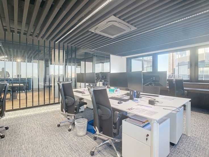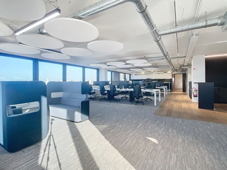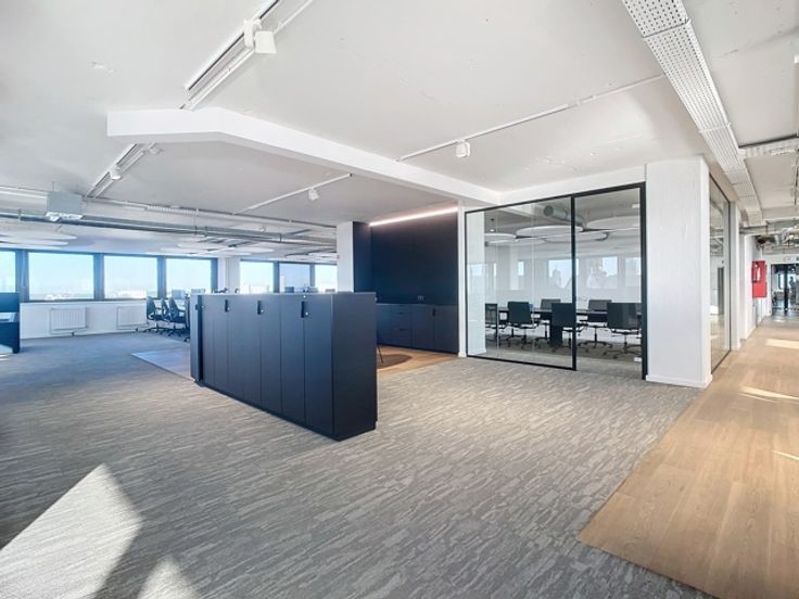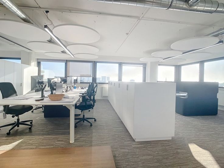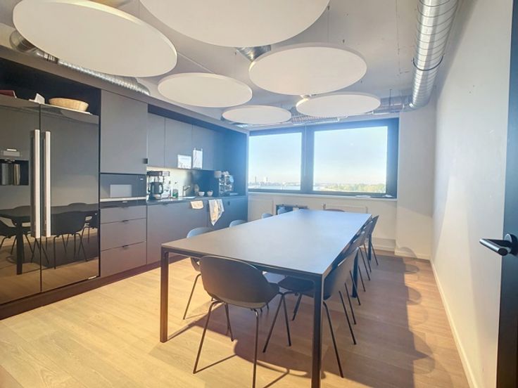 Op de negende verdieping van de Beacon bevindt zich deze prachtige kantoorruimte met een totale oppervlakte van 1.213m² met een adembenemend panoramisch zicht op het MAS en de Schelde. Het kantoor is luxueus afgewerkt d.m.v. hoogwaardige materialen. Doordat het gebouw op een hoek staat, genieten 3 gevels van royale raampartijen wat zorgt voor zeer veel lichtinval. De kantoorruimte zelf werd volledig gerenoveerd en geniet van open ruimtes, afgesloten kantoren, vergaderzalen en phone booths. Door het alarm- en badgesysteem en de permanente toezicht van de conciërge is ook de veiligheid hier gegarandeerd.