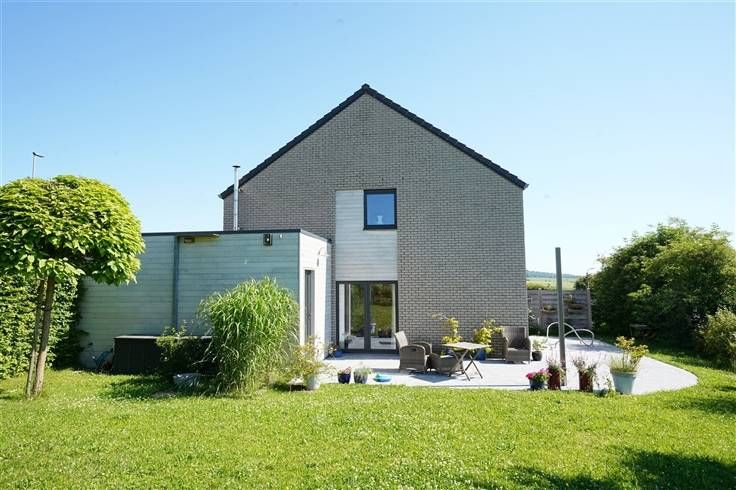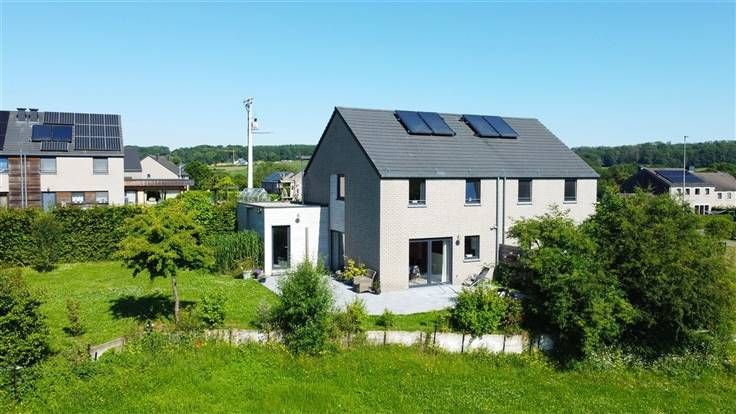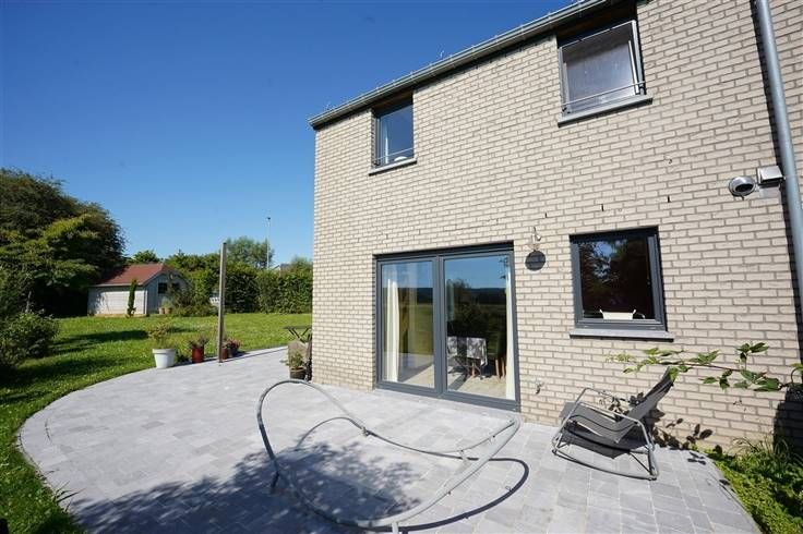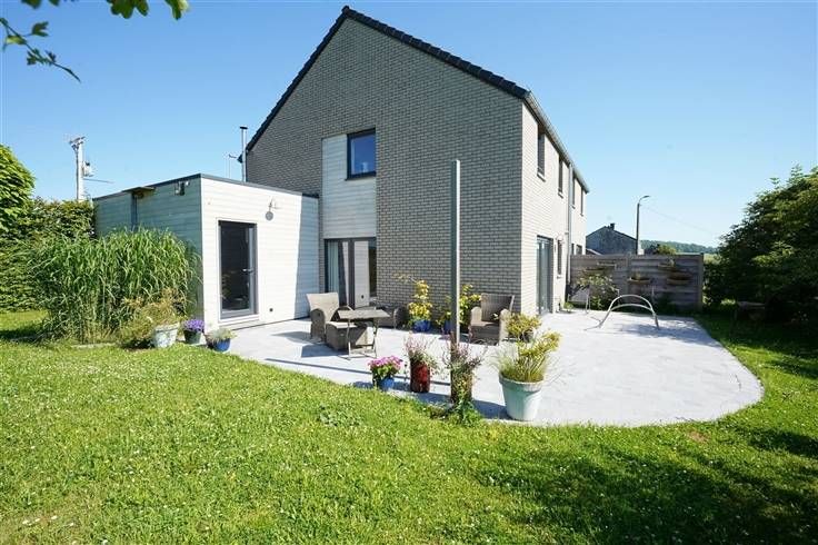 Sorry er is geen nederlandse vertaling beschikbaar. OPTION OPTION OPTION !!! Située dans le joli village d'Ocquier dans un environnement paisible, Trevi Rasquain vous propose cette très jolie maison 3 façades de 2014 de 120 m² habitables. Cette maison, idéalement située au fond d'une rue en cul-de-sac, comprend au rez-de-chaussée: un hall d'entrée avec vestiaire et WC séparé, un agréable séjour, une cuisine super équipée et une buanderie. A l'étage: un hall de nuit, une salle de bains, 3 chambres et un accès via escalier escamotable à un grenier de rangement. Garage et emplacements de parking extérieurs. Cette maison dispose également d'un agréable jardin joliment arboré et fleuri avec terrasse offrant une vue imprenable sur les campagnes,le tout parfaitement entretenu. Cette maison offre tout le confort moderne: chauffage central mazout, châssis PVC DV, citerne à eau de pluie, panneaux solaires thermiques, mini-station d'épuration, électricité conforme, isolation performante: PEB "B" - 129 kWh/m² an. Très bon état général! Idéalement située entre Huy - Liège et Marche. Faire offre à partir de 348.500€, sous réserve d'acception des propriétaires. Vous souhaitez vivre dans une maison agréable à vivre avec zéro tracas, cette maison est faite pour vous! A visiter sans plus tarder. N'hésitez plus à contacter notre agence au 085/25.39.03 ou info@trevirasquain.be. Informations données à titre indicatives et non contractuelles. Cette annonce ne constitue pas une offre.