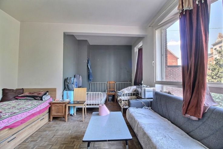 3de studio: bovenste verdieping van +/- 38m2, Van Volxemlaan 4, 1190 Vorst - de woning wordt momenteel bewoond door een huurder - huidige huurprijs is 600€/maand - Staat van de woning: onlangs gerenoveerd. De woning is als volgt samengesteld: woonkamer/slaapkamer +/- 16m2 / hal: +/- 2m2 / doucheruimte van +/- 6m2 / keuken +/- 6m2 / WC +/- 1m2 / berging +/- 1m2 - DIVERSEN: terras van +/- 11m2 , Huurderslasten: 140 €/maand inclusief; warm en koud water, onderhoud gemeenscha