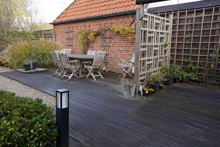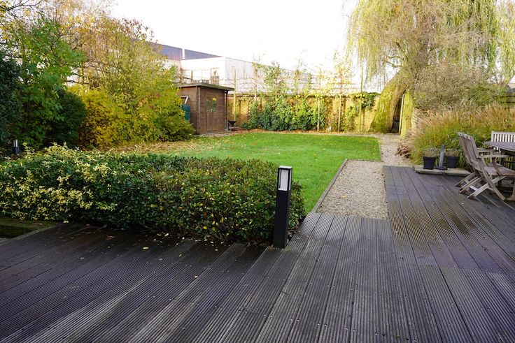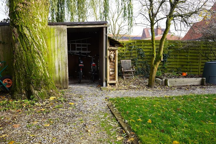Creatieve tuin (oost-zuid) met een gemoedelijk socializen zithoek - verschillende terrassen - tuinhuis en afzonderlijke fietsberging voor 6.