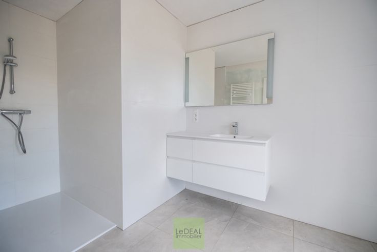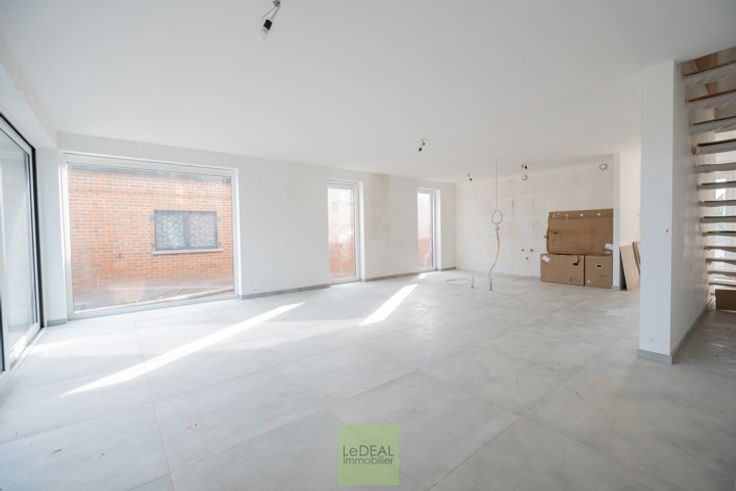 PRIX: 329.000€ calculé comme suit : 90.000€ pour le terrain à 12,5% de droit d’enregistrement et 265.000€ pour la construction à TVA 21%. Voici une nouvelle construction 3 façades de 166m² habitable située dans un quartier résidentiel de TARCIENNE, facile d’accès. Cette maison PEB A vous offre une bonne isolation, du système de chauffage par pompe à chaleur (chauffage au sol), radiateur électrique dans les salles de bain (sèche serviette), ventilation simple flux, châssis DV en PVC et en ALU pour le coulissant, citerne d’eau de pluie (5,200L) et une toiture plate en EPDM. Le trop plein d’eau pluviale est drainé à l’arrière et les eaux usées via une fosse septique et pompe de relevage à l’égout public. Cette maison se compose d’un hall d’entrée (13,86m²) avec vestiaire intégré donnant sur une toilette suspendue séparée (2,24m²), d’un vaste et lumineux séjour orienté est (50,29m²) avec cuisine full équipée (taque à induction, four, frigo et congélateur) avec un bel îlot central. A l’étage, un spacieux hall de nuit (10,09m²) donnant sur un deuxième WC suspendu séparé (1,40m²), 3 chambres (16,26m²-13,64m²-13,64m²) dont une parentale avec sa salle de douche (6,56m²), d’une salle de douche commune (5,30m²) et d’une pièce buanderie (5,34m²). Extérieur : terrasse de (21m²) donnant sur votre jardin. Il y a 2 emplacements de parking en devanture et 1 passage latéral menant au jardin. Le terrain est clôturé à l’arrière entre les deux constructions, nivelé et ensemencé.