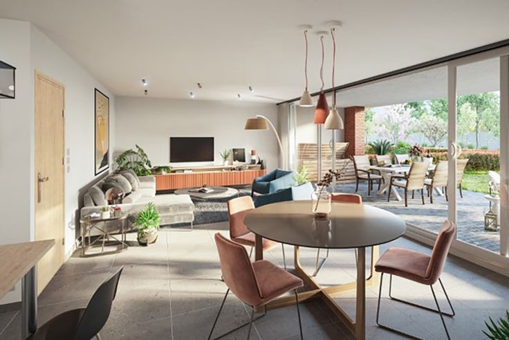 Caractéristiques générales : Hall d'entrée, 1 ou 2 WC séparés avec lave-mains, 2 à 3 chambres et bureau en fonction des lots, une salle de bain et/ou salle de douche, meuble vasque et miroir avec éclairage, séjour avec cuisine équipée ouverte, buanderie, balcon et/ou 1 à 2 terrasse(s) et jardin privatif selon les lots, ascenseur.