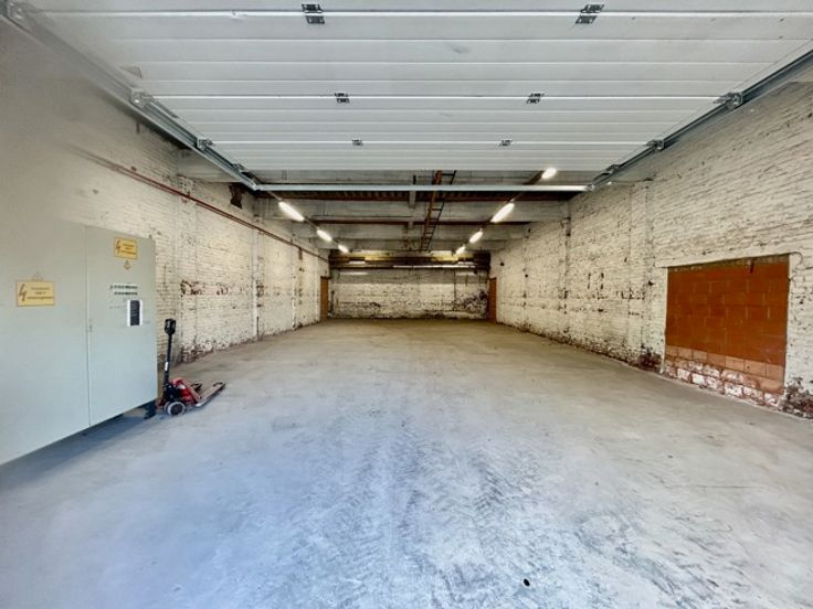 De site is toegankelijk via een wijde toegangspoort aan straatkant. De bruikbare ruimte van het magazijn is rechthoekig en bedraagt 210m2 en er is een vrije hoogte binnen van 4m.