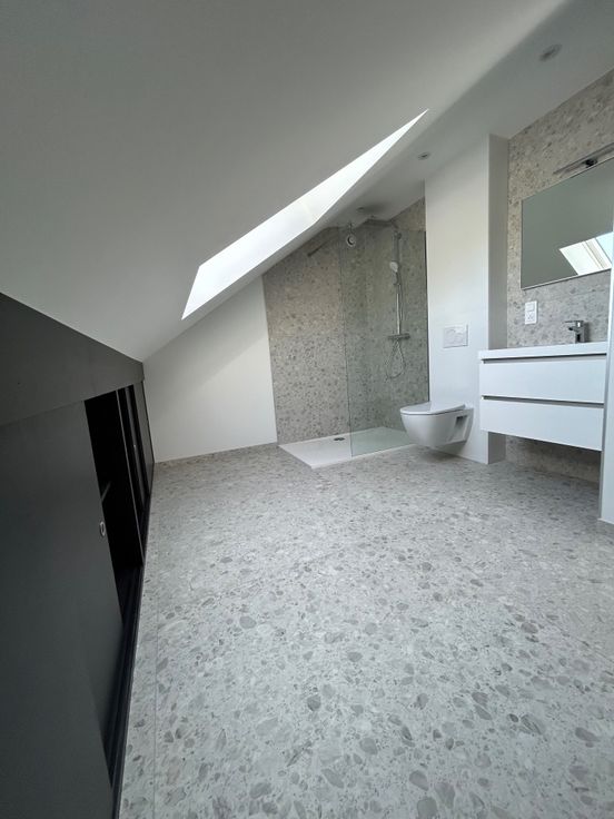 Garage 2 voitures, caves, piscine extérieure, ( à entretenir) salon d'hiver , 2 terrasses ,4 chambres , deux sdb. Tout le confort moderne apporté dans cette maison à 3 min du centre d'arlon , d'oberpallen, et des axes autoroutiers.