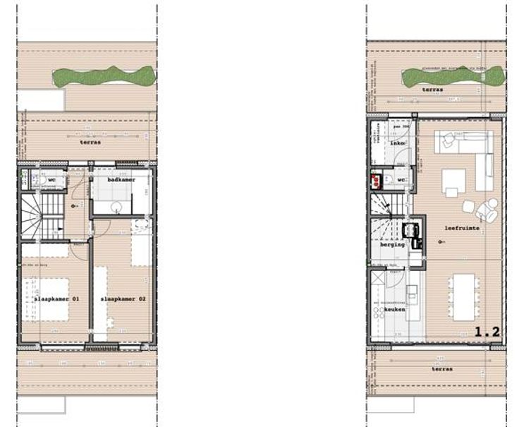 Op een steenworp van Asse centrum verrijst binnenkort de prachtige nieuwbouw residentie ''CHALET D'ASSCHE''. Dit gloednieuw bouwproject ontleent zijn naam en inspiratie aan het voormalige betoverende hotel-restaurant Chalet d'Assche, een prachtig gebouw doordrenkt van nostalgie uit een vervlogen tijdperk. Het bouwproject bestaat uit 14 appartementen waaronder 7 gelijkvloerse appartementen (bew. opp. van 77,15m2 tot 97,00m2), 2 hoekappartementen (bew. opp. van 88,25m2 en 97,02m2) en 5 duplex appartementen (bew. van 102,88m2 tot 110,15m2). Alle appartementen beschikken over 2 slaapkamers (enkel appt. 0.1 betreft een 1-slpk appartement) en ruime terrassen. ➔ Dit betreft APPARTEMENT 1.2: bewoonbare oppervlakte 108,02 m2 (2 slaapkamers) & 3 terrassen met totaal van 34,22 m2 Per appartement wordt een handelswaarde voorzien voor badkamer/ sanitaire toestellen (5.075€ incl. BTW en plaatsing), alsook voor de vloerbedekking (30.00€/m2 excl. BTW). Voor de keuken is er door interieur LIN een ontwerp op maat uitgetekend, volgens een vooropgesteld budget cfr. lastenboek (keuken : TYPE 2), detailofferte hieromtrent ook beschikbaar. Ondergrondse staanplaatsen beschikbaar vanaf 24.000 EUR (excl. BTW & registratierechten), kelderbergingen eveneens beschikbaar vanaf 4.750 EUR (excl. BTW & registratierechten). BEN voordeel: verwarming o.b.v. geothermieverwarming (= verwarmen vanuit diepteboringen), vloerverwarming, vloerkoeling in de zomer, zonnepanelen, warmtepomp in de kelder, geen aansl