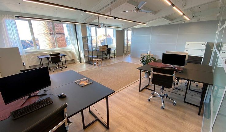 58m² gemeubeld kantoor met 10 werkplekken in gerenoveerde fabrieksloft (uitbreidbaar met naastgelegen kantoor tot 20 werkplekken)