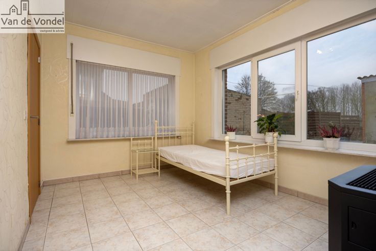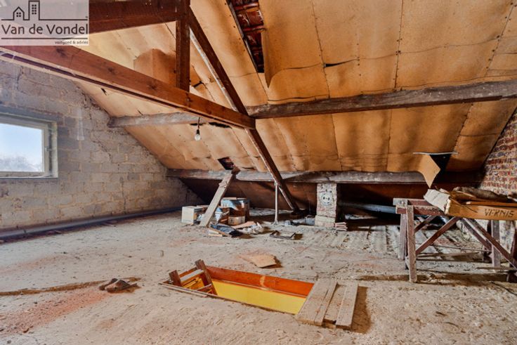 Ruime woning met 4 slpks en grote tuin te Denderleeuw. In Denderleeuw, op wandelafstand van het station, de winkels, scholen, het openbaar vervoer en het centrum bieden wij deze op ruime woning aan. De woning omvat op het gelijkvloers een inkomhal, een leefruimte, een keuken, een berging en een bureau (of slaapkamer?). De eerste verdieping omvat 3 ruime slaapkamers en een badkamer met douche. Mits plaatsen van een vaste trap kan de zolder ingericht worden naar nog meerdere slaapkamers of polyvalente ruimte. Achteraan de woning werd nog een garage voorzien. De grote troeven aan deze woning zijn de grote zuidgerichte tuin (300m²) met terras en parkeergelegenheid voor 3 wagens. Voor meer info www.vandevondel.be. Wenst u graag een bezoek ter plaatse, contacteer 0479/88.88.06. EPC waarde: 444 kWh/m².