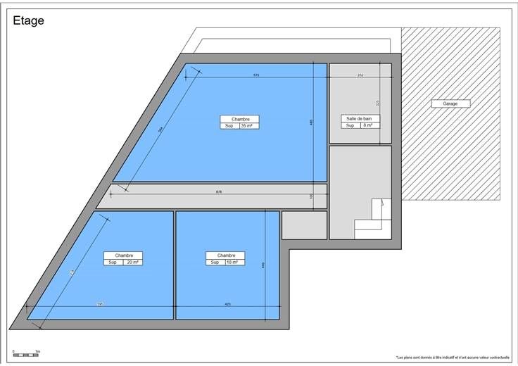 Etage: Hall de nuit, salle de douche, 3 chambres dont une avec balcon.