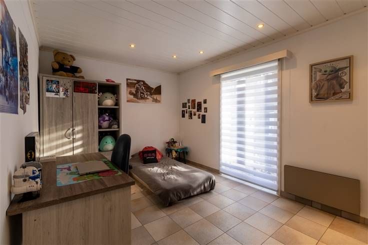 Betreed de lichte en ruime leefruimte, waar de warmte van de open haard en de moderne airconditioning voor een aangenaam klimaat zorgen, het hele jaar door. De grote ramen zorgen voor een serene verbinding met de rustige buitenomgeving en vullen de kamer met natuurlijk licht, wat bijdraagt aan het gevoel van thuis. De functionele keuken, voorzien van ingebouwde apparatuur, biedt voldoende werk- en opslagruimte voor culinaire avonturen. De aangrenzende veranda, met zicht op de verzorgde tuin, nodigt uit tot ontspanning of gezellig tafelen in elk seizoen. Drie comfortabele slaapkamers garanderen persoonlijke ruimte voor iedereen, terwijl de moderne badkamer met een veelzijdige douchecabine een frisse start van de dag belooft.