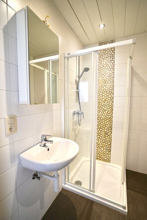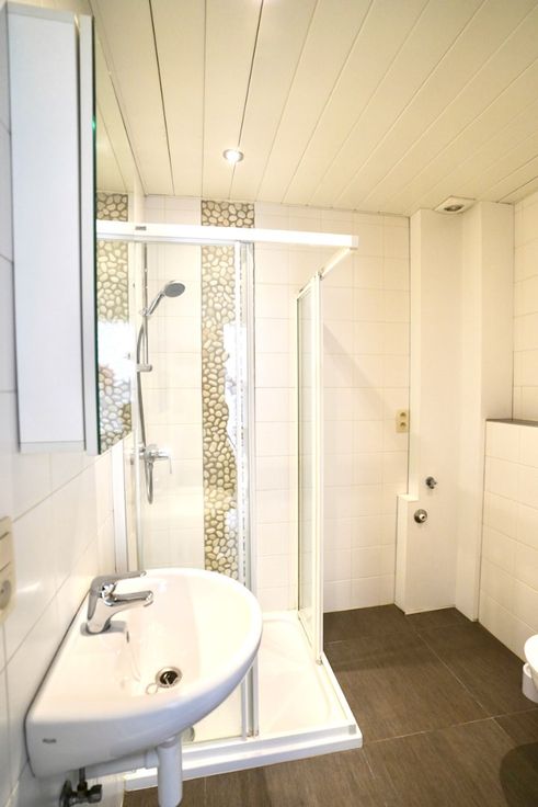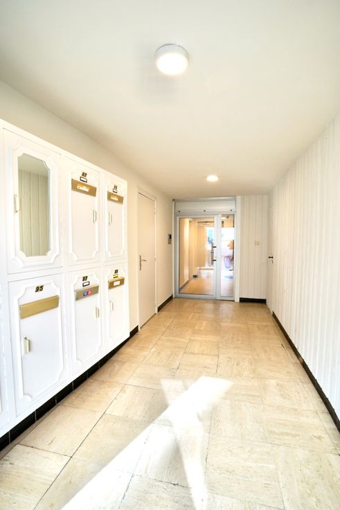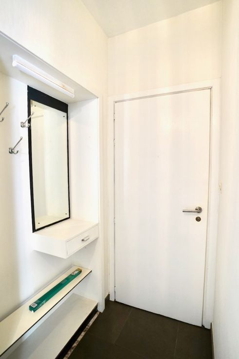 Indeling: inkomhal met vestiaire, leefruimte, keuken, 2 slaapkamers, badkamer met voorziening wasmachine, toilet en douche en het zonneterras/koer.