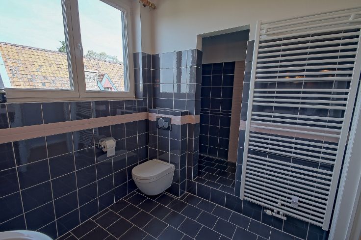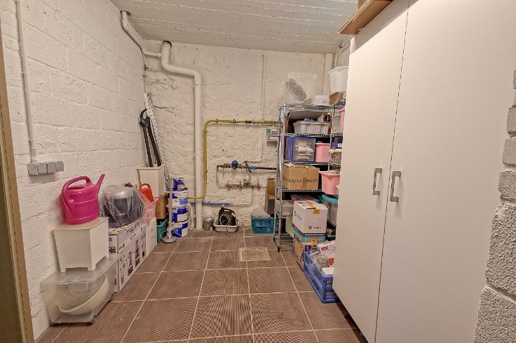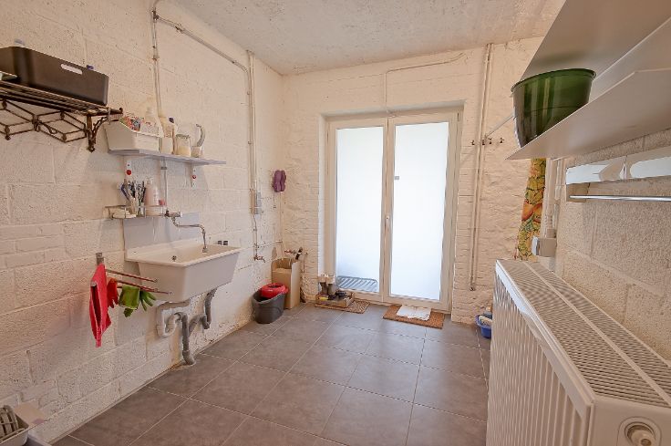 Quelques renseignements techniques : châssis en bois (méranti) double vitrage dans un état impeccable, installation électricité conforme, chauffage central au gaz de ville, système d’alarme, PEB D. Renseignements et visites au 0473/822.365.