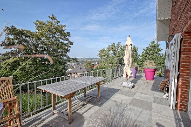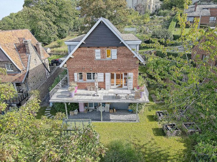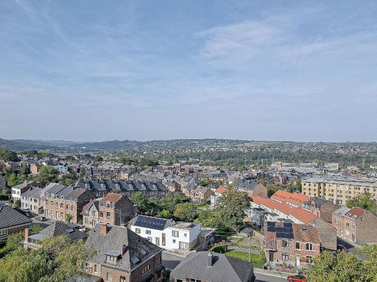 Au cœur de la colline et surplombant Namur, maison de charme rénovée en 2017 avec des matériaux de qualité. Entourée de jardins et de végétation luxuriante, cette propriété offre une vue exceptionnelle sur la ville depuis sa grande terrasse de 31m², orientée sud-ouest. Elle se compose, au rez-de-chaussée, d’un hall, d’un bureau avec WC, d’un lumineux séjour, d’une cuisine équipée.À l’étage, un hall desservant une chambre avec dressing, une seconde chambre (pouvant être divisée en 2), une salle de douche avec WC et deux petits débarras. Au second étage, un bel espace de rangement isolé. Au sous-sol, de grandes caves, peintes et carrelées, permettent l’accès au jardin. Possibilité d’y aménager un bureau ou un garage.