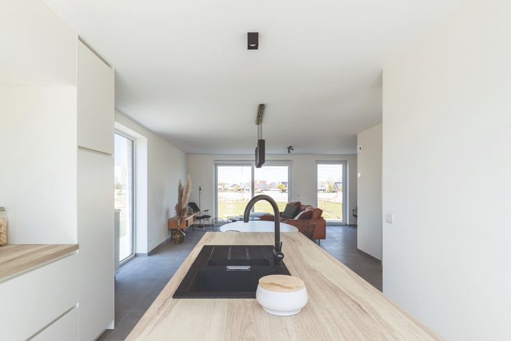 Lichtrijke leefruimte met open keuken;