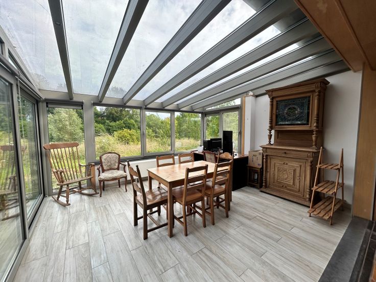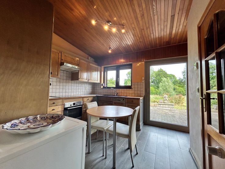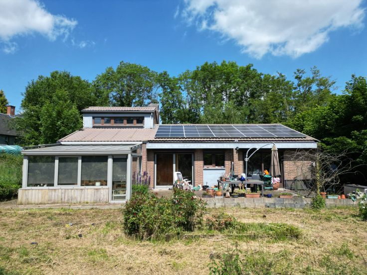 : . Gelijkvloers: Inkomhal, Woonkamer, Keuken, 2 Slaapkamer, Insteekkamer, Badkamer(s),, Veranda(s) . Kelderverdieping: Kelder . : : 387 Kwh, EPC certificaat nb., Total énergie primaire: 64278 kwh/an . Grond:, Tuin, Gehesen, Afrasteerd,, . Uitrusting van keuken: Keramisch kookvlak fornhuis, Oven, Wasemkap, Vaatwasmachine, Keuken meubelen . Elektrische uitrusting: Alarm, Thermostaat, Elektrische garagedeur, Elektrische blinden, Fotovoltaïsche panelen . Andere uitrusting: Schoorsteen, Dubbele beglazing, Blinden, Zonnetent . Vensters: Aluminium, Hout . Dakwerk: Dakpannen . Grond: Betegelen, Gelamineerde bevloering, Plakenvloer . Diensten: Autoweg, Bus: m, Winkelcentrum: m, School: m, Ziekenhuis