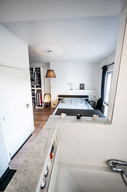 U hoeft enkel maar de trap af te dalen en u wandelt binnen in het schitterende restaurant Testa Rossi. Ideaal voor mensen met lekkere honger, maar ook indien u zich graag met de fiets verplaatst binnen het satdscentrum. Indeling : inkomhall - woonkamer 31m² met halfopen keuken 6m² - apart wc - slaapkamer met dressing 17m² aansluitend op de badkamer (bad + lavabo) 8m².