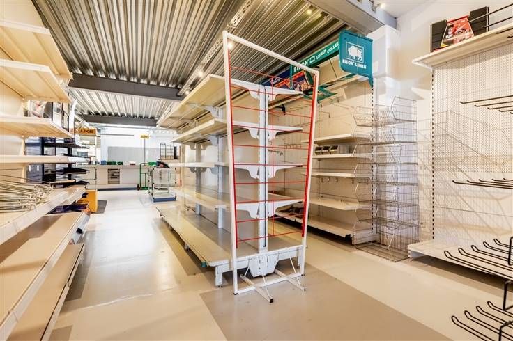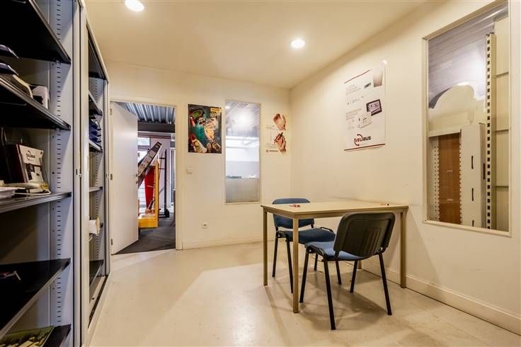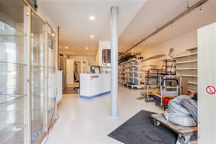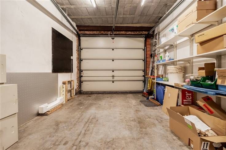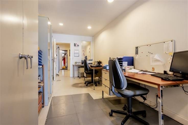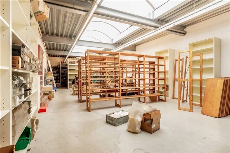 Achteraan bevindt zich een zeer ruim magazijn die eventueel kan gebruikt worden als Polyvalente ruimte. Als kers op de taart heeft dit pand een inpandige garage die rechtstreeks toegang geeft naar de handelsruimte.