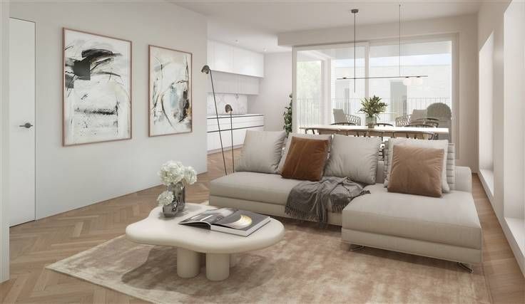 KOOP AAN 6%* BTW - Profiteer nu van de tijdelijke actie met tot 10.000€ extra budget om jouw appartement naar smaak af te werken! Op de eerste verdieping vindt u dit 2-kamer appartement. De leefruimte is opgedeeld in zithoek, eethoek en ingebouwde keuken. Het geheel geeft uit op het zuidwest georiënteerde terras. Er is een berging voorzien grenzend aan de keuken en nog een extra berging die u kan gebruiken als wasplaats. Verder geeft dit appartement plaats aan 2 slaapkamers, een badkamer met inloopdouche en een apart toilet. De woonunits worden duurzaam, geluidsarm en energiezuinig afgewerkt en verwarmd met natuurlijke energie via een geothermische wartmtepomp. Vloerverwarming/vloerkoeling en gebalanceerde ventilatie zorgen voor een aangenaam wooncomfort. De keuken en binnen afwerking van de appartementen gebeurt naar eigen smaak binnen het budget bij de vooropgestelde leverancier. Als koper wordt u bij deze aankoop op plan beschermd door de Wet Breyne. Voor elk appartement is een kelder en een staanplaats (met mogelijkheid voor elektrisch laden) voorzien die afzonderlijk moet aangekocht worden. De oplevering is voorzien voor deze zomer. Weet dat er geen doorgaand verkeer meer is in de straat vanwege het nieuwe circulatieplan, uw rust is dus verzekerd.