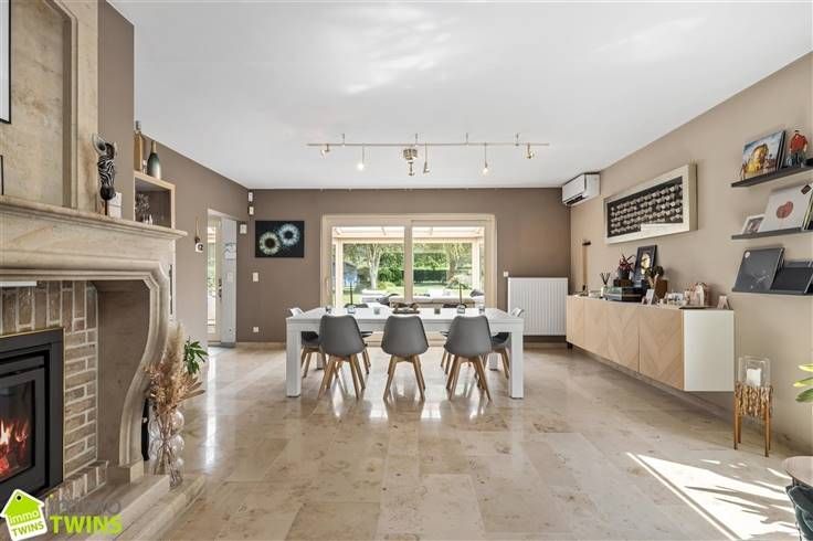Riante villa op royaal perceel met 3 slpks. Deze schitterende villa met een bewoonbare oppervlakte van 214m² en een royaal perceel van 1476m² biedt u alle comfort en luxe die u zoekt. De woning beschikt over 3 ruime slaapkamers, een prachtig haardvuur en een grote tuin + veranda met een noordoostelijke oriëntatie, grenzend aan achterliggende velden die zorgen voor een groen uitzicht en ultieme privacy waar het steeds heerlijk vertoeven is. Als indeling : - Begane grond : Bij binnenkomst wordt u verwelkomd in een ruime inkomhal die toegang biedt tot de verschillende leefruimtes. Hier bevindt zich ook een apart gastentoilet en aparte waskamer. De ruime en lichte woonkamer is het hart van de villa, met een prachtig haardvuur uit natuursteen dat zorgt voor een gezellige sfeer. De keuken is voorzien van alle comfort en zowel vanuit de keuken als woonkamer heeft u directe toegang tot de veranda en de fraai aangelegde tuin, waar u kunt genieten van de rust en het mooie uitzicht over de velden. - Tuin: De noordoostelijk gerichte tuin is een oase van rust en groen. De veranda biedt een ideale plek om te ontspannen en te genieten van de tuin die doorloopt naar de achterliggende velden waar u ook tevens kan genieten van een terras. - Eerste verdieping: Hier bevinden zich 3 ruime slaapkamers, een apart toilet en een badkamer die is uitgerust met een douche, ligbad en dubbele wastafel. - Garage: De woning beschikt over een dubbele garage, ideaal voor het stallen va