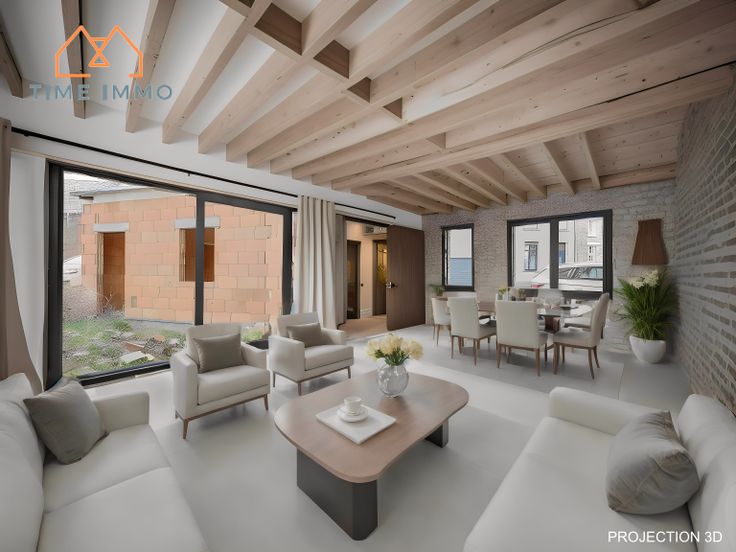 Rez-de-chaussée : Une partie living, une partie cuisine et une partie salle de bain/douche