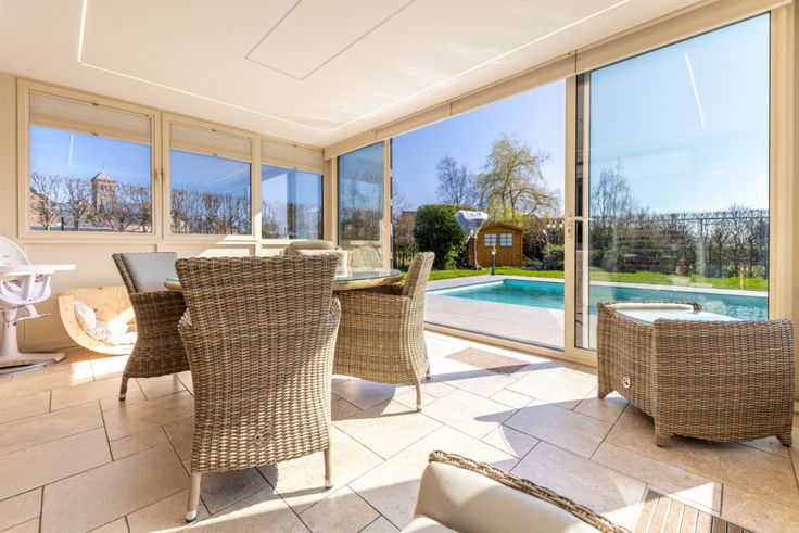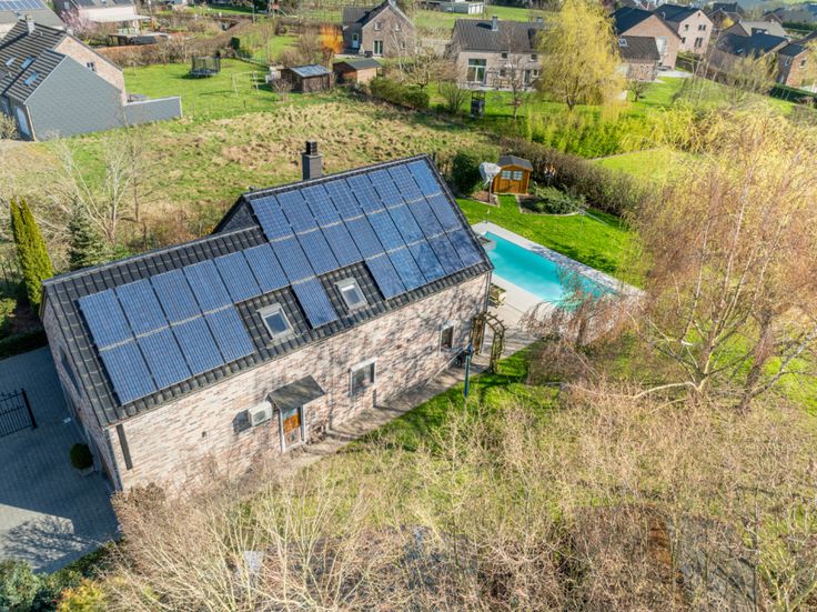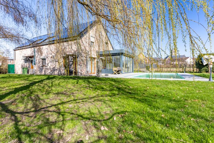 Gelijkvloers: 1 Keuken, 1 Inkomhal, 1 Woonkamer, 1 Veranda(s) . Eerste verdieping: 1 Kantoren, Slaapkamer: 18 m², Slaapkamer: 18 m², Slaapkamer: 25 m², Inkomhal, 1 Badkamer(s) . Verschillende kamers: Terras, Garage(s), 3 Parkeerplaats, 2 Toilet, 1 Zolder . Bijgebouw: 3 Schuilplaats . Grond: 1, 1 Zwembad, 1 Tuin, Particuliere laan, 1 Afrasteerd, Portaal . Uitrusting van keuken: Keuken meubelen, Koelkast, Oven, Vaatwasmachine, Keramisch kookvlak fornhuis, Wasemkap . Elektrische uitrusting: Fotovoltaïsche panelen, Alarm, Kabel TV, Telefoon, Elektrische garagedeur . : : 277 Kwh, EPC certificaat nb. . Vensters: PVC