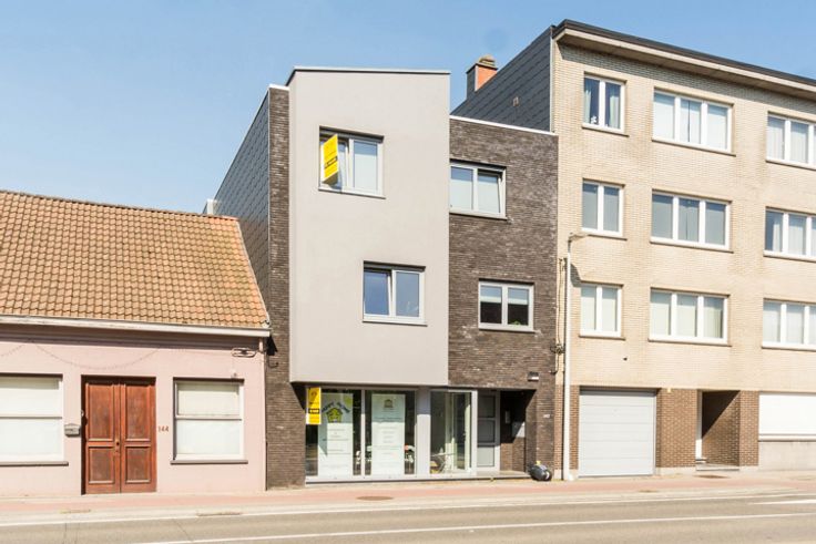 VALIMMAS verhuurt deze commercieel gelegen kantoor- of winkelruimte in een recent gebouw. Gelijkvloerse handelsruimte (±52m²) + kitchenette + toilet + 2 bergplaatsen (±9m²) + parking achteraan (via doorrit gebouw rechts). Ook ideaal als praktijkruimte voor vrij beroep. Gelegen langsheen de N9 Brussel-Aalst = uitstekende zichtbaarheid, ideaal voor uithangbord !
