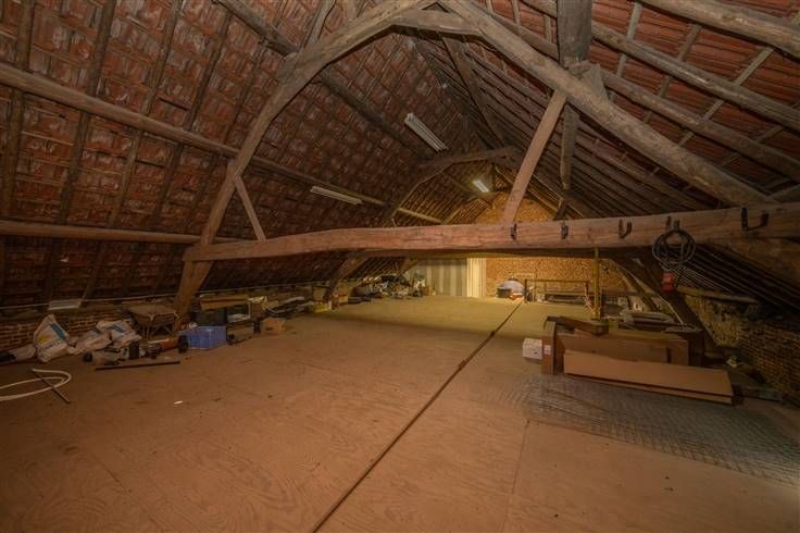 Zie www.berth.be voor meer informatie Een ruime opslagplaats (253m2 bruto) + dakvolume, op een perceel van 30 are in agrarisch gebied: Gelijkvloers (253m2): GEDEELTE VOORAAN: netto breedte loods: +/- 10m00, netto diepte loods: +/- 18m00, kleine aanbouw aan voorzijde: 4m10x6m40, GEDEELTE ACHTERAAN: netto breedte loods: +/- 3m10, netto diepte loods: +/- 7m30, SECTIONAALPOORT LINKS: breedte: 2m85, hoogte: 3m52, elektrisch bediend, SCHUIFPOORT RECHTS: elektrisch bediend Verdieping (160m2): zelfde netto maten als het gelijkvloers, voorste gedeelte (4m58 diepte) met betonvloer, achterste gedeelte (13m62 diepte) met houten vloeren, kitchenette met WC (3m00x3m30)