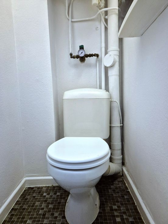 Inkomhal met kast die toegang geeft tot het aparte toilet, de slaapkamer, de keuken en de woonkamer.
