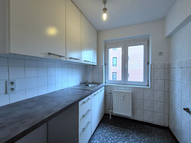 Half ingerichte keuken, met ruimte voor wasmachine, dubbel raam voor veel lichtinval.