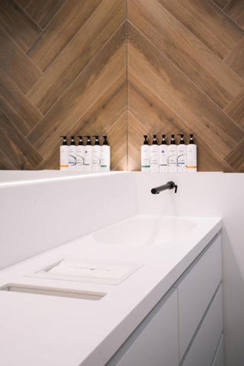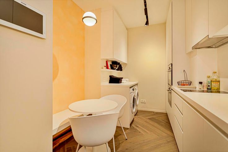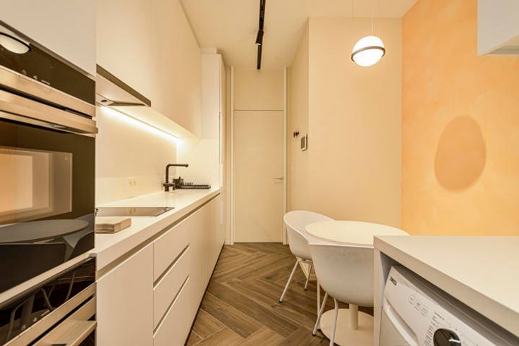 Handige keuken uitgerust met 1 oven en 1 combi microgolf-oven, een inductie kookplaat, enkele lavabo en aansluiting voor wasmachine en droogkast. Ideaal voor een rustige en ongestoorde lunchbreak. Achteraan nog extra aparte ruimte die momenteel gebruikt wordt als bureau met sanitair waar u zich nog snel kan opfrissen na een drukke werkdag of die je kan gebruiken als een extra behandelruimte.