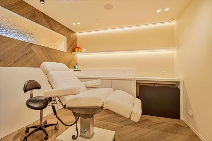 Het pand is momenteel uitgebaat als skin clinic en ingedeeld met ruime ontvangstruimte met 1 onthaalbalie en barmeubel met Quooker kraan, 2 ijskasten en lavabo. Het bestaat daarnaast uit 4 zeer grote behandelcabines. Hierdoor ook uiterst geschikt voor andere vrije beroepen : dokters cabinet, tandartspraktijk, kinesitherapie , logopedie, psychologe, ….