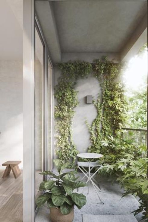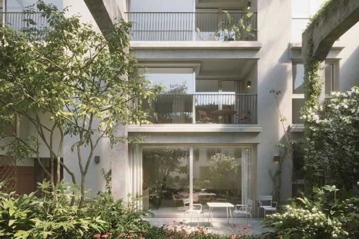 Het decor straalt persoonlijkheid uit, dankzij een speciale selectie van duurzame materialen van hoge kwaliteit en zorgvuldig gekozen afwerkingen voor een opmerkelijke originaliteit. Hoewel er geen parkeerplaats is, beschikt elk appartement over een beveiligde fietsenstalling (de europese wijk is op alleen 8 minuten met uw fiets). De gemeenschappelijke binnentuin, ontworpen door Jan Bleys, bevat bestaande betonstructuren en maakt vrij, royaal, klimmend groen op terrassen mogelijk.
