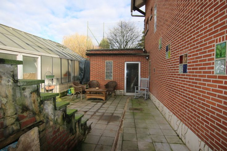 2 Villas jumelée (Vendue ensemble ) dans cadre champêtre, dont une habitable mais nécessitant une rénovation et l'autre en l'état de gros oeuvre avec grands volumes grande terrasse de plus de 80 m². Châssis Alu électricité refaite. Chauffage par convecteur électriques . Villa portant N° 3 à l'état de gros oeuvre : REZ : Hall d'entrée 7 m², emplacement pour WC et vestiaire ,séjour 36.4 m² ,pièce pouvant servir de cuisine ou bureau 10.58 m²,salon 31m²,à demi niveau espace de 9.3 m², espace prévu pour salle de bain et douche d'environ 10m² .Cave , Jardin spacieuses remises pouvant servir d'atelier .