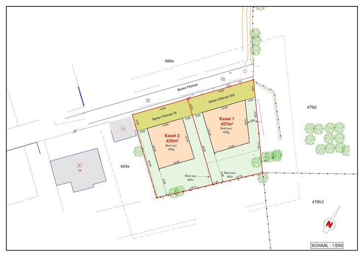 De grondoppervlakte van deze grond is 425 m².
