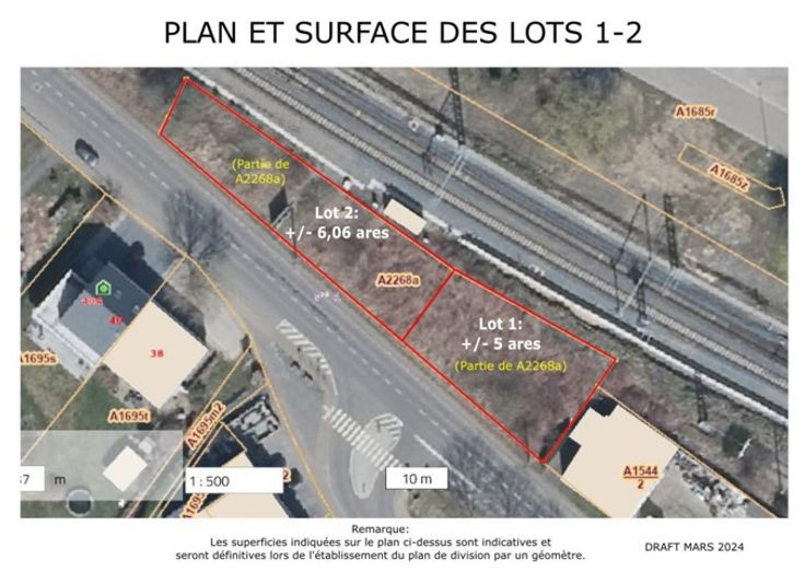Possibilité de faire offre également pour le lot 2 (606m2), ce qui représenterait une superficie totale de 11a06ca avec une largeur totale à rue d'environ 80m.