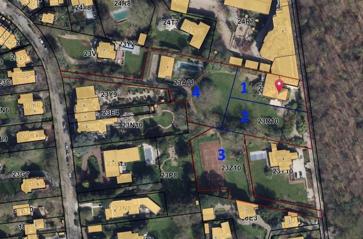 In een ultra-geprivilegieerde omgeving en locatie: tegenover het Terkamerenbos, vlakbij Vivier d'Oie, SUPERB bouwperceel van 25 are 24 op de begane grond. Diepte +/- 40 meter en breedte +/- 50 meter, met onafhankelijke toegang tot drève des Gendarmes van +/- 50 meter. Talrijke mogelijkheden.