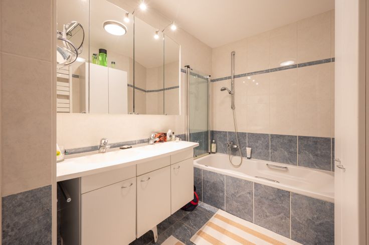Inkomhal met veiligheidsdeur en vestiaire, woonkamer op hoek met onmiddellijke toegang tot de terassen, aparte ingerichte keuken met buitenraam, slaapkamer 1, slaapkamer 2, badkamer met lavabo & ligbad, apart toilet, berging.