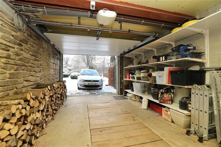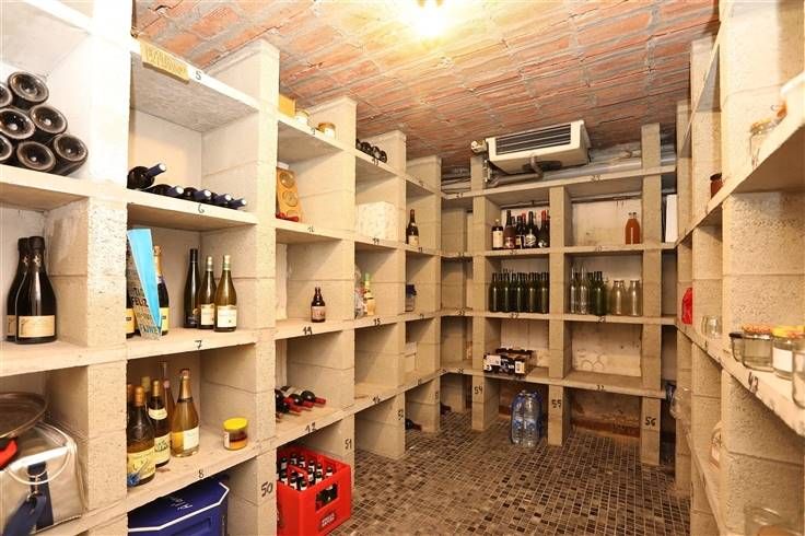 Op de hoogte van de koer, 2 garages 38 en 22 m², hal 18 m², stookplaats13.50 m², bergplaats 12 m², wijnkelder 7 m², wc.