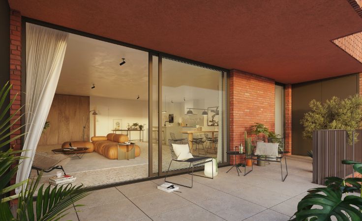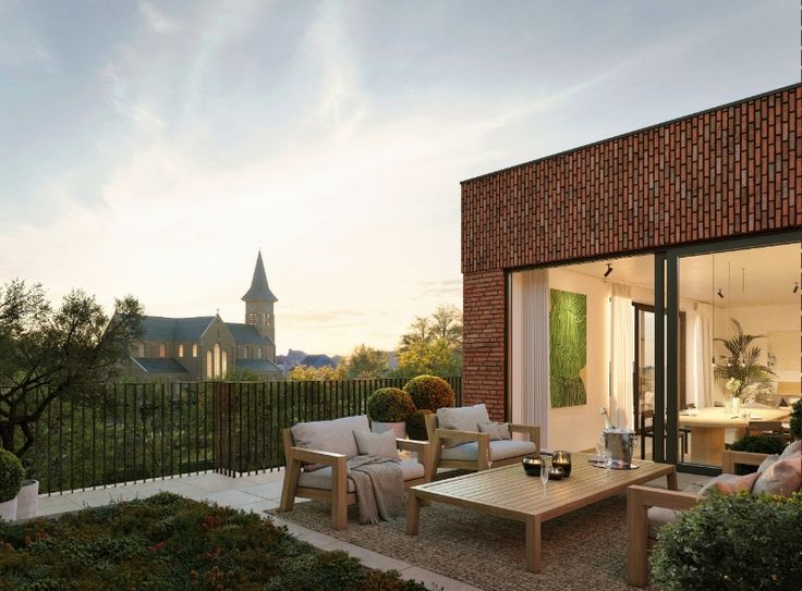 Op de bovenste verdieping van het L-vormig gebouw bevinden zich 3 royale penthouses. Het bouwvolume wordt gebroken door de inplanting van een groendak, wat de ruimtelijke beleving versterkt en draagt bovendien bij tot een goede luchtkwaliteit in de woonomgeving. De gelijkvloerse verdieping wordt opgeladen met een levendige, commerciële plint, die naadloos aansluit bij het publieke plein. Onder de bouwvolumes bevindt zich een ruime ondergrondse parking.