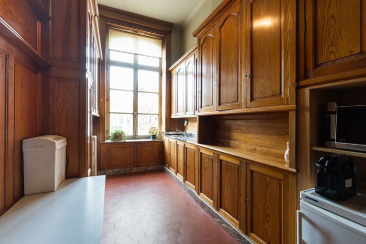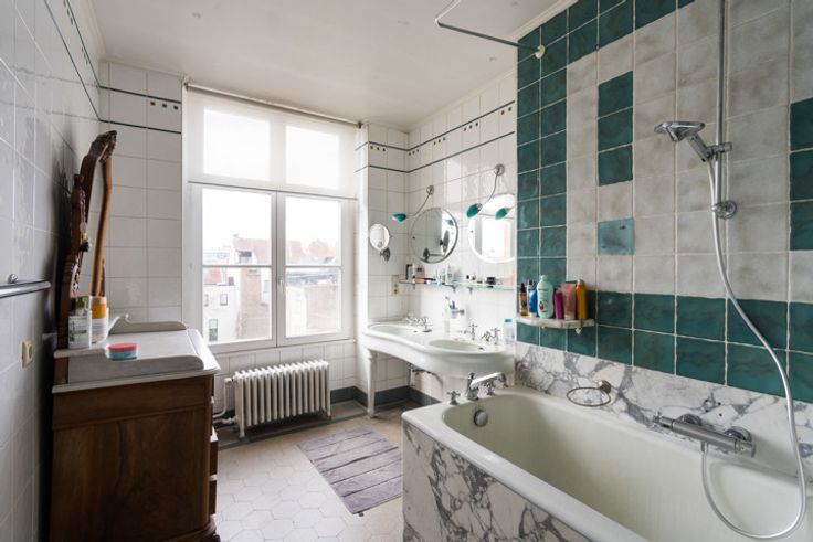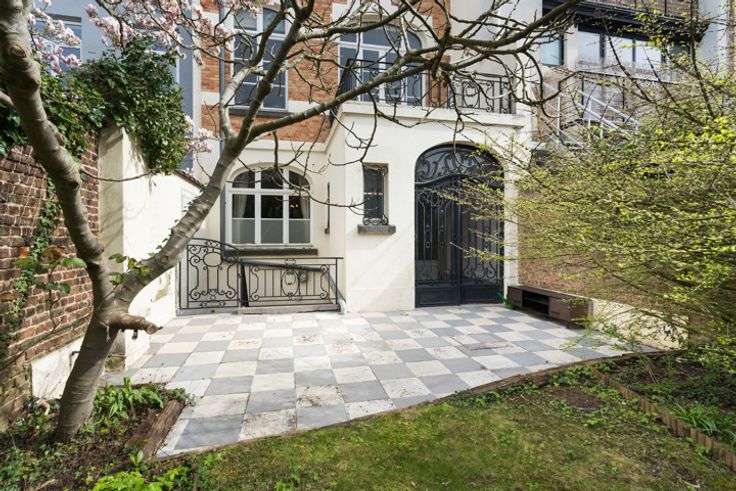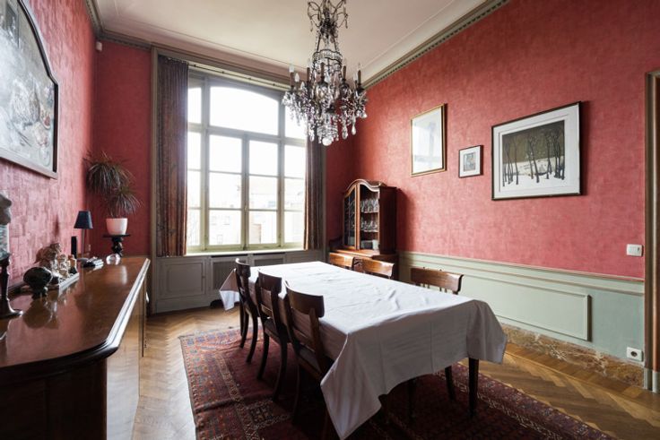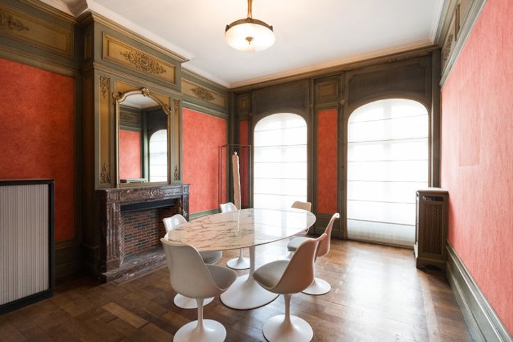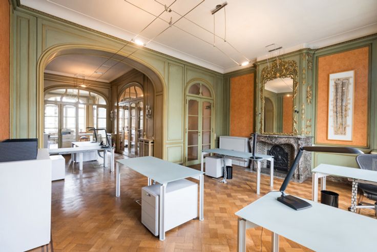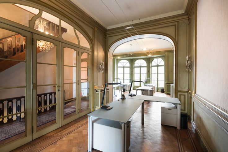ETTERBEEK, in de zeer gewilde buurt van Montgomery, prachtig HERENHUIS (4 slpk/2 badk) van +/- 630m² bebouwd oppervlakte bestemd voor wonen en kantoren, gelegen op een perceel van +/- 3 are 89 centiare. Het kantoorgedeelte bestaat op de begane grond uit een grote poortentree met toilet voor de klanten en toegang tot de West-tuin, een mooie ingangshal die leidt naar twee vergaderruimtes (19 en 20m²), in de kelder bevinden zich een kitchenette (5m²) met toegang tot de tuin, 2 bergingen, 2 aparte toiletten voor het personeel, een doucheruimte, 2 kantoren waarvan één met ingebouwde kasten (respectievelijk 18 en 17,5m²), een technische ruimte, de stookruimte (BUDERUS condensatiegas van 2022), een derde kantoor (10m²), dubbele stroomventilatie. Op de 1e verdieping bevinden zich de open ruimte (50m²) met prachtige originele open haard, een vierde kantoor (20m²) met toegang tot het terras, een semi-uitgeruste keuken (12m²). Het woongedeelte bestaat op de 2e verdieping uit een grote woonkamer (31,5m²) met open haard, een tweede woonkamer of bibliotheek (19m²), een eetkamer (20m²), apart toilet, een uitgeruste keuken (8m²). Op de 3e verdieping bevinden zich 3 slaapkamers (13, 16 en 17,5m²), een grote dressing (20m²), een wasruimte met apart toilet, een badkamer (bad/douche, 2 wastafels). Op de 4e verdieping bevindt zich een grote afgewerkte zolder (32,5m²) met 4e slaapkamer met douchecorner en wastafel. Elektriciteit niet-conform. EPC: E- (265 kWh/m²/jaar). Een pand om snel te ontdekke