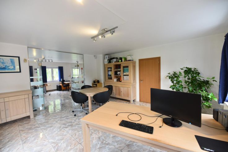 Le niveau situé à hauteur du terrain arrière comprend des caves de 25 m² et un espace bureaux de 116 m² avec salle de réunion et véranda, offrant une belle vue sur le jardin. Au rdc: grande surface de 95 m² parfaite pour une profession libérale, une salle d'exposition ou des bureaux. A l'étage: appartement de 121 m² avec entrée individuelle. Comp: living lumineux, cuis éq, 2 ch, sdb et bureau situé au rez.
