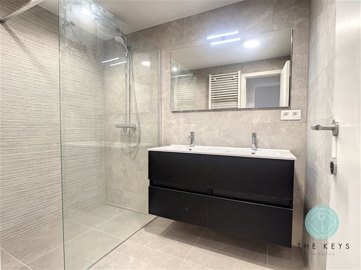 EXCLUSIVITEIT THE KEYS - UCCLE / Calevoet - Dicht bij het Kinsendaelpark en het station van Ukkel Calevoet, presenteren we een aangenaam APPARTEMENT van +/- 107m² bewoonbare oppervlakte met 2 slaapkamers en een GROOT TERRAS in een kleine mede-eigendom van alleen 5 kavels. Het hele gebouw werd grondig gerenoveerd, zowel technisch (isolatie, warmteproductie, zonnepanelen, enz.) als esthetisch (OPGELET, de bekleding van het terras is nog niet zichtbaar op de foto's). Gelegen op de 1ste verdieping (geen lift), bestaat het uit een inkomhal die uitgeeft op een centrale circulatiezone van +/- 13,3m² die een kantoorruimte zou kunnen herbergen, een half aparte en uitgeruste keuken van +/- 9m², een lichte dubbelhoge woonkamer van +/- 35,5m² met toegang tot het TERRAS van +/- 21m² (zuid-oost), 2 slaapkamers (+/- 12,5m² & 10,8m²), douchekamer en apart toilet. Overal dubbele beglazing, zonnepanelen, elektrische installatie conform... EPC 111kWh/m² (C+) ; 18kg CO² ; EPC n° 0000663421-01-0
