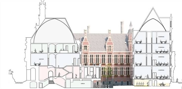 De Nationale Bank is een eclectisch topwerk van architect Hendrik Beyaert, gebouwd in 1878 aan de Leien van Antwerpen. Het gebouw is een icoon in het stadsbeeld , uitstekend gelegen, imposant en heeft karakter. Afgewerkt met de beste materialen, oogt het klasse- en stijlvol. Met een interessante locatie , vlakbij diverse parkeergelegenheden, aan een knooppunt van diverse tram- en buslijnen, op wandel- en fietsafstand van gekende winkelstraten en het stadscentrum. De toekomstige bestemming van het gebouw situeert zich op verschillende vlakken, zoals horeca, retail, kantoren en diverse faciliteiten , in een trendy, hedendaags en toch historische omgeving. Door het open karakter en het mooie binnenplein , is er een vlotte passage en vormt het een rustpunt om te vertoeven . De kantoren zijn beschikbaar vanaf min 400 m² en volledig op maat gemaakt.