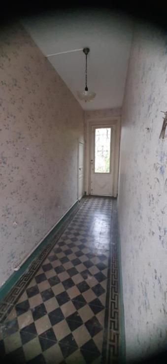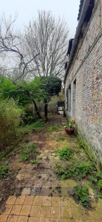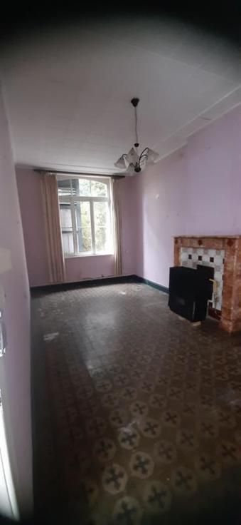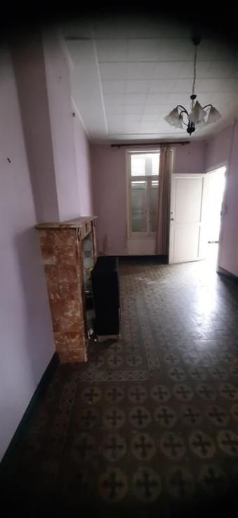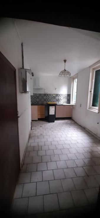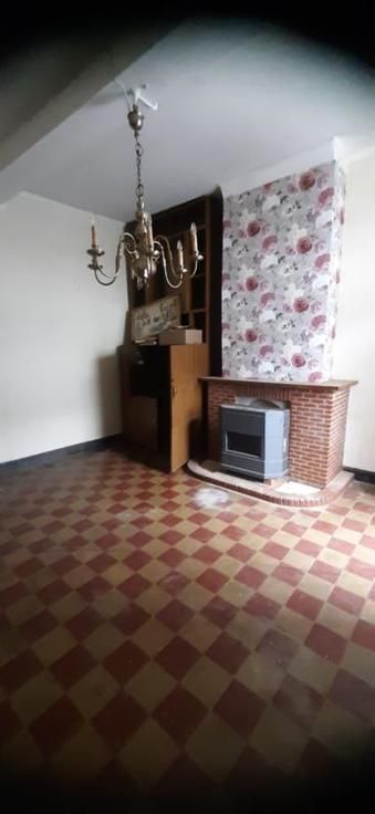 Maison trois façades : Composition : Sous-sol : cave Rez-de-chaussée : hall d'entrée, sur la droite : une grande pièce de vie ; sur la gauche : deux pièces de vie, une salle d'eau, une cuisine. 1er Etage : un espace ouvert pouvant servir de bureau ou dressing, deux chambres, grenier aménageable. Equipements et Extérieurs : • Accès par le passage latéral ; • Châssis en bois ; • Volets en bois ; • Chauffage par convecteur gaz ; • Garage ; • Partie terrasse ; • Remise ; • WC extérieur ; Maison à rénover entièrement.