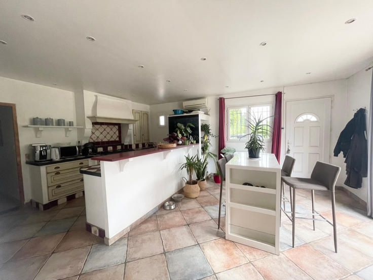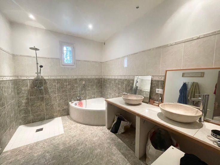 CHATEAURENARD (Dépt 13) : Cette propriété équestre est très bien située, en campagne, tout en étant proche du Centre Ville et des axes routiers. L'habitation construite en 1975 a été rénovée en 2007 et ne nécessite pas de travaux. Seulement une pièce de 50 m2 à l'étage reste à terminer selon vos envies et vos besoins. En rez de chaussée, vous trouverez la cuisine équipée avec le coin repas qui s'ouvre sur la terrasse, le salon/séjour spacieux (51 m2) et lumineux grâce à ses ouvertures dont une baie vitrée qui s'ouvre également sur la terrasse dôté d'une belle cheminée et d'un poêle à granules. Ensuite, une salle d'eau avec douche et baignoire ainsi qu'un WC séparé. L'étage offre deux chambres dont une avec accès à la salle d'eau et un WC également séparé.Une mezzanine vient compléter cet étage ; vous pourrez y faire un bureau ou une autre chambre. Au même niveau que les chambres, la pièce de 50 m2 à terminer (elle est déjà en partie isolée et équipée de fenêtres). Les extérieurs sont également très intéressants. Devant le mas, un jardin de 1000 m2 où vous trouverez une piscine hors sol (mais le terrain est piscinable), un parking stabilisé, un espace potager de 100 m2 prêt à planter, un espace cuisine d'été à terminer et tout cela avec une vue sur les chevaux ! Le reste du terrain (2ha800 au total) est consacré à 'l'activité équestre' avec : box sur paddocks, abris individuels sur paddocks, prés, espace cross, terrain de moutain trail, carrière en sable éclairée et arros