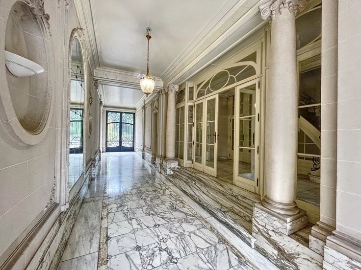 *Rez-de-chaussée: double porte vitrée en fer forgé ouvrant sur une très belle et lumineuse entré cochère avec de belles colonnes et des miroirs.