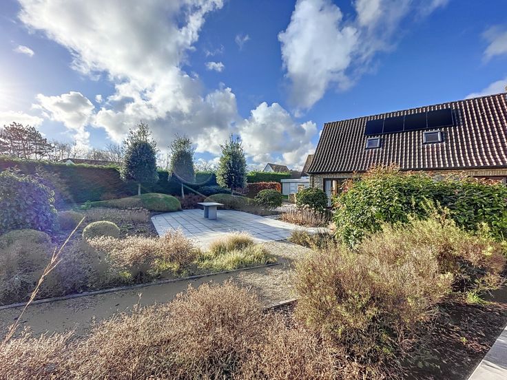 Deze ruime en zongerichte woning is gelegen vlak bij het natuurgebied en op een zucht van het strand.  De woning werd gebouwd in 1996 en afgewerkt met kwalitatieve materialen.  Indeling:  inkomhal met toilet, zithoek, ruime living met openhaard, eetkamer met zicht op de tuin, volledig ingerichte keuken, bergruimte.  Verdiep: ruime slaapkamer met dressing en zeer ruime badkamer.  Kelderverdieping:  wijnkelder, dubbele garage.  Bijgebouw: inkomhal met toilet, twee slaapkamers met één badkamer (glv), ingerichte keuken met living en eetkamer.  Verdiep: technische ruimte en zeer ruime slaapkamer / polyvalente ruimte.  Zongericht terras met tuin.  De witte gevel is illustratief. Ref. D-57 Renovatieplicht: nee