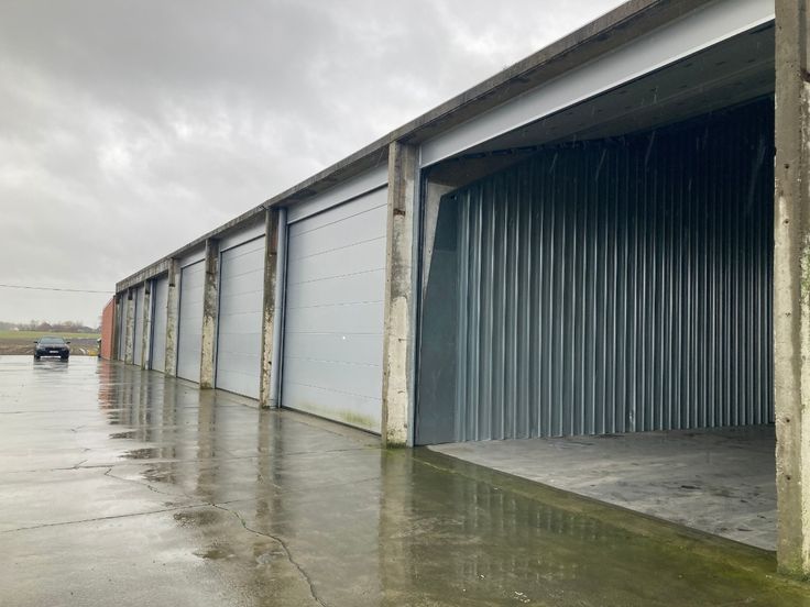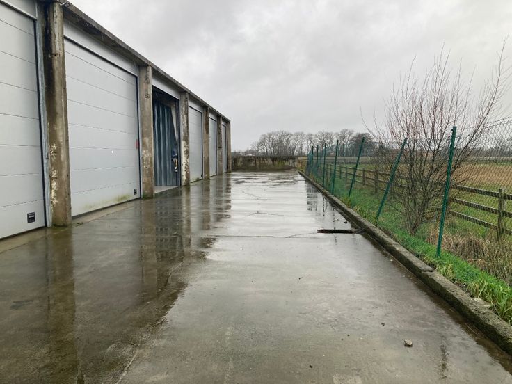 grote loods van 120m² zeer mooie grote loods, perfect om te stapelen in de hoogte en zeer toegankelijk. aansluiting van elektriciteit is aanwezig. grote poort met een hoogte van 4.20m Prijs is exclusief btw.