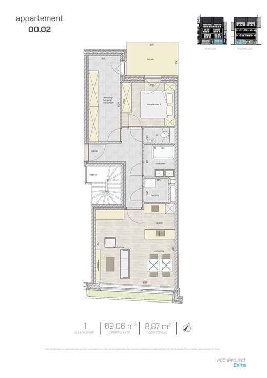 Met trots stellen we woonproject 'Evita' aan u voor, een stijlvol woonproject met 8 lichtrijke appartementen alsook 2 woningen met garage. Het project is centraal gelegen en een meerwaarde in het kwalitatieve bouwsegment te Middelkerke.