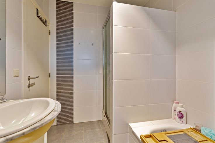 De nachthal geeft uit op de eerste slaapkamer, welke momenteel ingericht is als bureau, een gastentoilet, een berging/wasplaats en een volledig betegelde badkamer met ligbad, douchecel en wastafel in meubel met extra kastruimte. De laatste deur geeft uit op het ruime overdekte terras welk voorzien is van een buitenkeuken. U geniet hier voldoende privacy en een mooie zonoriëntatie.